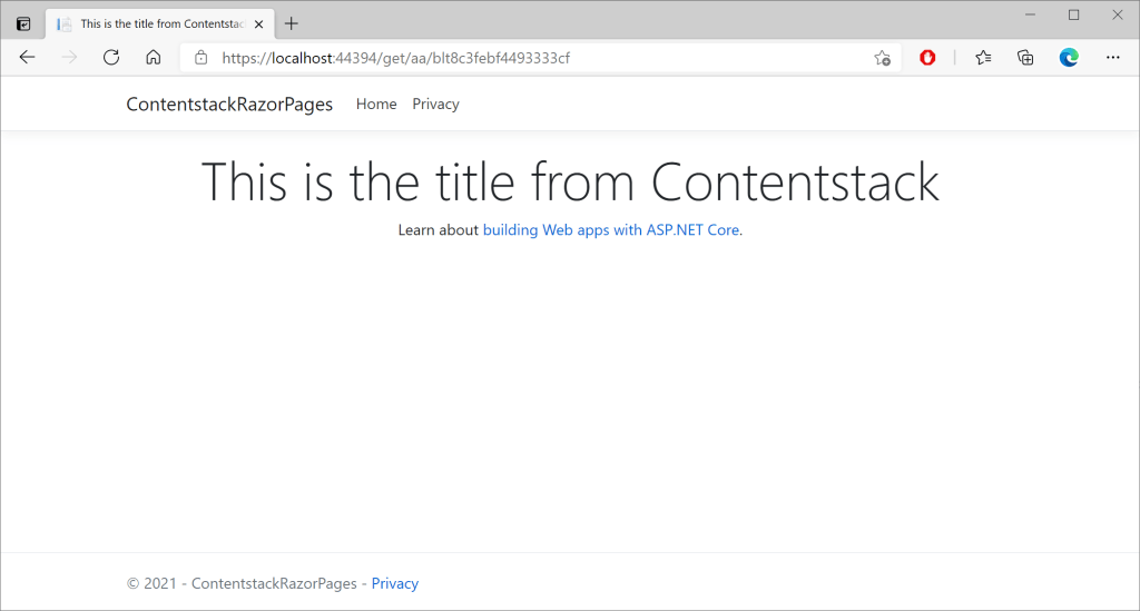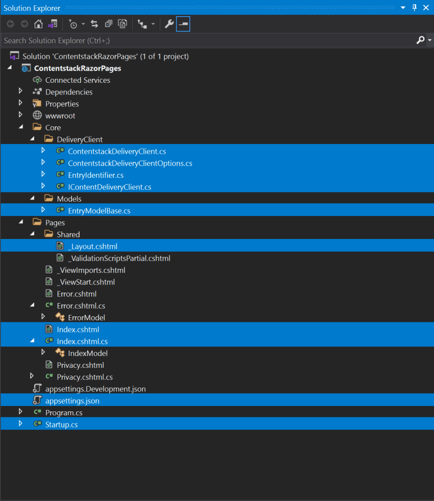 The HttpClient that connects to Contentstack is the biggest piece, and you could use the Contentstack .NET SDK to avoid this. I am reusing an HttpClient that I created for Blazor with an appsettings.json file to support it.
