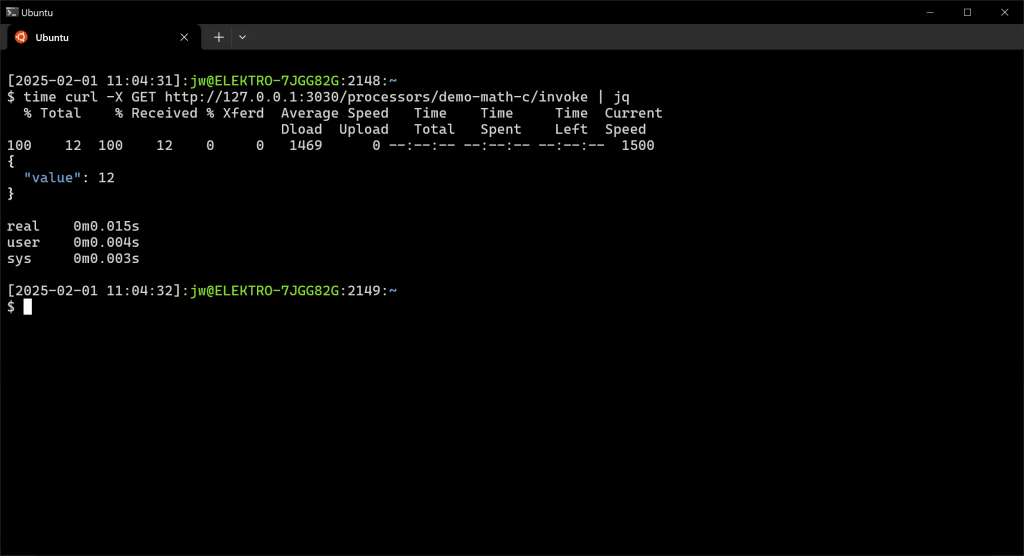 time curl -X GET http://127.0.0.1:3030/processors/demo-math-c/invoke | jq