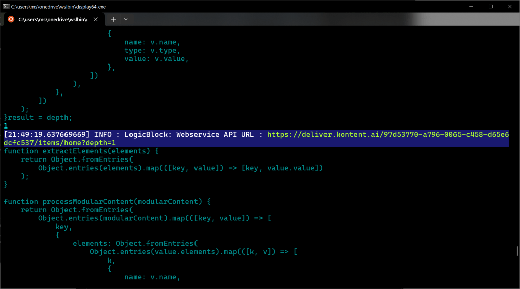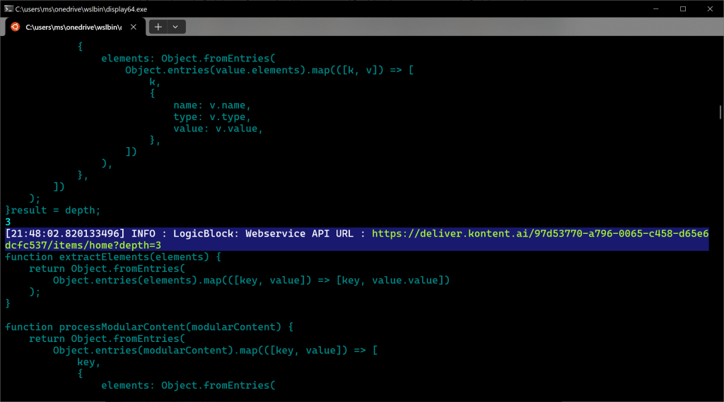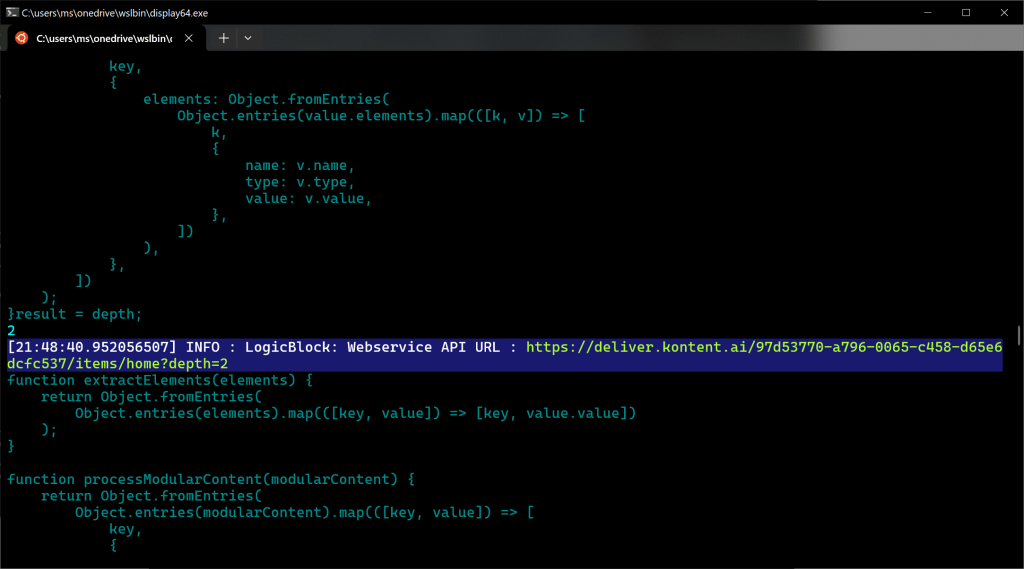 Orchex checks the cache relatively early in the process, before calling the webservice API. As caching varies by depth, the JavaScript that defines the cache key that depends on depth runs before the logic for the webservice API call that also determines depth. Therefore, the logic that determines the depth query string parameter for the Kontent.ai webservice API can reuse the depth variable set by the script that determines the caching key. If these stages occurred in the opposite order, then the query string parameter logic would define depth, and caching could use that value. I’m leaving in a libraries block I use for testing, in this case using the function that reformats the item.
