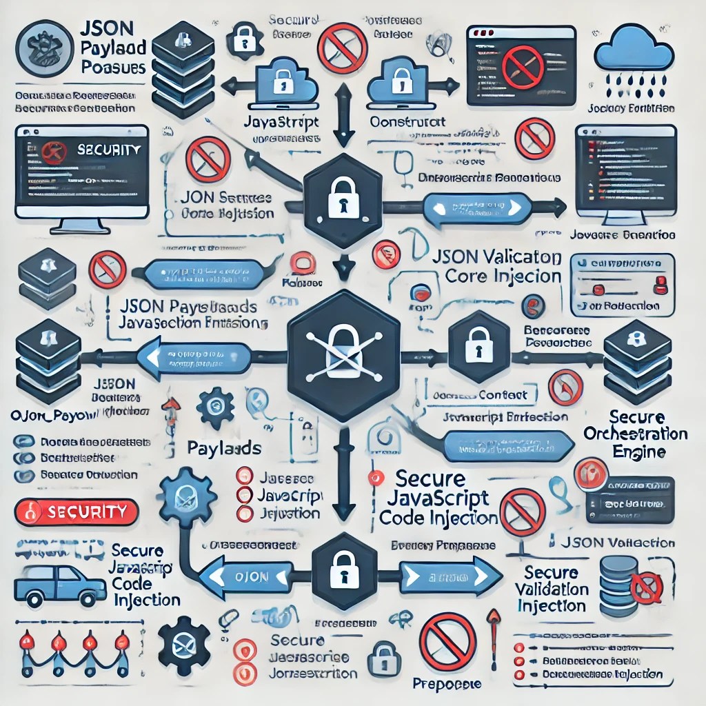 This blog post provides some information about securing JSON payloads used by JavaScript virtual machines with the Orchex Enterprise Orchestration Engine (EOE). System security, especially for something as vital, fundamental, and potentially all-encompassing, is an area where it always helps to be paranoid. Based on our research on this topic, and knowing how software is crafted these days, we are actually more concerned about the potential misuse of such JSON in systems other than Orchex, which we implement in Rust to invoke JavaScript virtual machines with limited capabilities and in limited contexts. Additionally, even without validating the JSON, we were unable to get the virtual machine to invoke any JavaScript, but this may be a “limitation” of the quick_js virtual machine currently in use. We will continue researching, but we would appreciate any comments on this topic and our specific considerations. Note that LLMs have been helpful both in understanding the issues and in developing relevant attack techniques for “testing” purposes.
